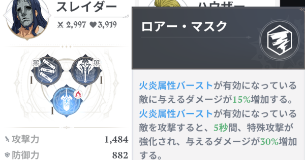 大剣スレイダーは、火炎バースト状態の敵に対して火力が上がるパッシブ効果を持ちます。火炎バーストゲージを溜めやすいトリスタンと相性が良く、高いダメージを期待できるため一緒に編成するのがおすすめです。