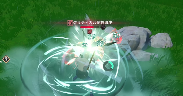 双剣の通常スキルは、火炎属性防御力デバフが付与された敵に対してバーストゲージを大量に蓄積します。特殊攻撃でデバフを付与できるので、特殊攻撃→通常スキルの順で発動しましょう。