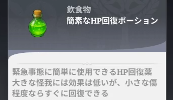 アイテムごとに決まった量のHPを回復できます。アイテムがあればいつでもどこでも回復できるため、戦闘前に準備しておきましょう。回復アイテムは作成するほか、商店で購入することも可能です。
