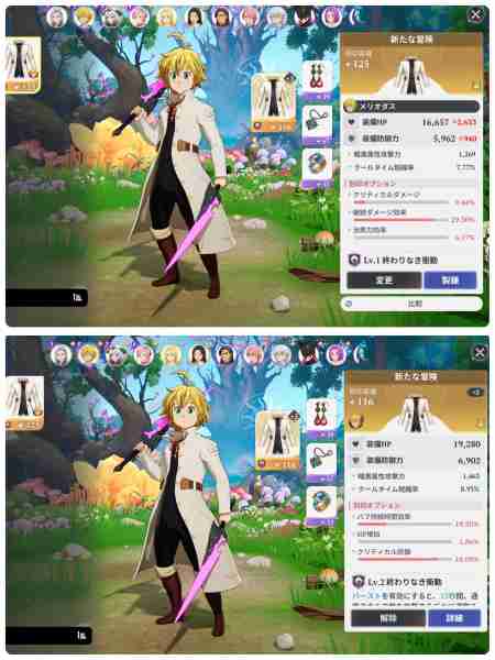 特殊効果が共鳴する願いで合技ダメアップと懲罰時間の延長、ティオレーは何だったかな確か魔力増幅が付いたものがあったはずサポート系のマニーも魔力増幅付けると合技ずっと撃てるからあとはメリオダスで殴るだけ