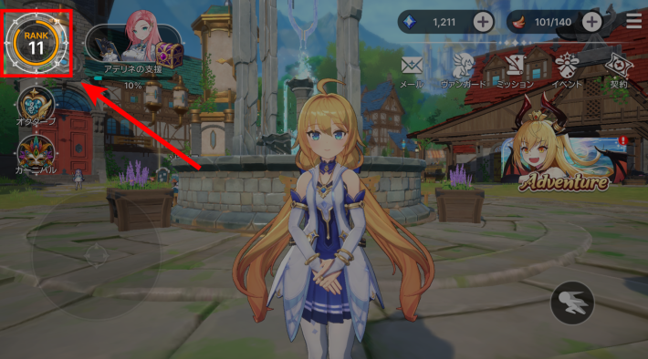 アビスディアの名前(ニックネーム)を変更したい場合は、タウン画面の左上にあるプロフィールを選択しましょう。