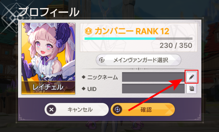 アビスディア(ABYSSDIA)の名前(ニックネーム)の変更方法です。名前の変更手順や変更時の注意点などを掲載。アビスディア名前を変更する際はこちらを参考にしてください。