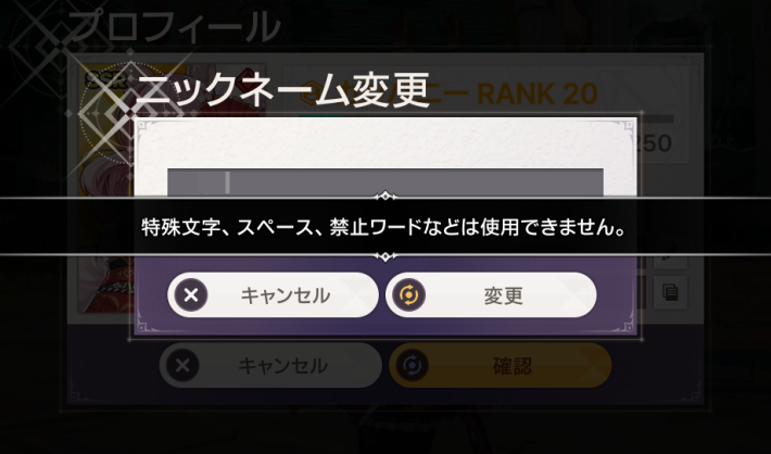 アビスディアの名前を設定する際は、特殊文字や禁止ワードは使用できません。スペースも使用できないので注意しましょう。