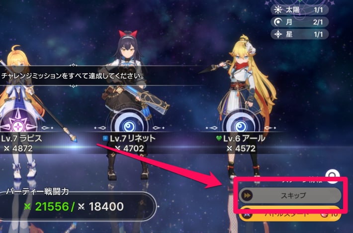 アビスディアのスキップは、そのステージのチャレンジミッションをすべて達成しないと解放されません。スキップ機能が解放されていない時はオートプレイを活用しましょう。
