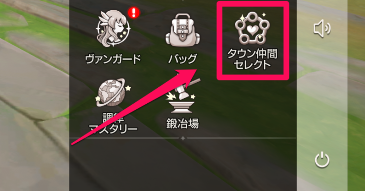 メニューにある「タウン仲間セレクト」をタップすることで、タウンで呼べるキャラを選択可能です。呼べるキャラは最大5体までで、所持しているキャラのみ呼ぶことができます。