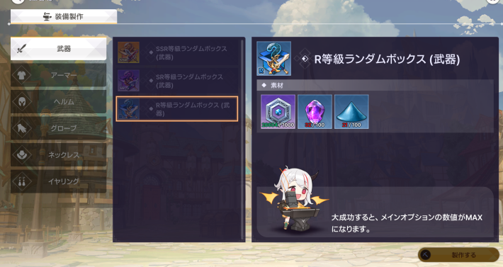 アビスディアの鍛冶場では、レア度ごとのランダムな装備を入手できる「ランダムボックス」を製作できます。ランダムボックスの素材は「汚染変異体討伐」から入手可能です。