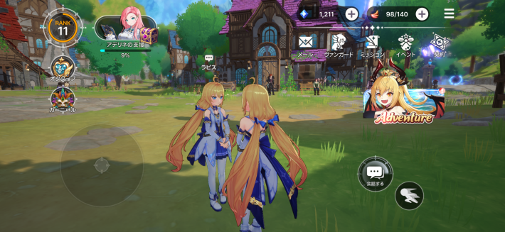 メニュー画面からも冒険の画面に移行できます。ポータルはタウンに端にあり少し遠いため、メニュー画面から冒険に出発するのがおすすめです。