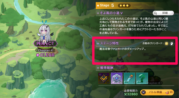 ステージ挑戦前の画面にステージ特性が表示されているため、特性に合わせてキャラを編成しましょう。「お勧めヴァンガード」に表示されている属性を多めに編成するのがおすすめです。