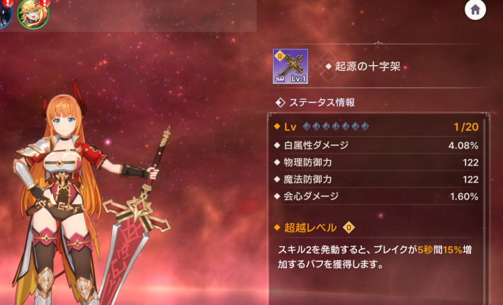アーティファクトと装備を装着することでキャラのステータスを伸ばすことができます。また、SR以上のアーティファクトには特殊オプションがあり、ステータス以外の効果も付与可能です。