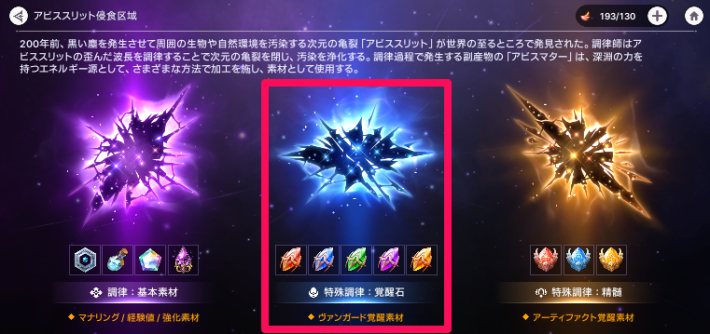 覚醒に必要な覚醒石は、主にアビススリット侵食区域の「特殊調律:覚醒石」で入手できます。
