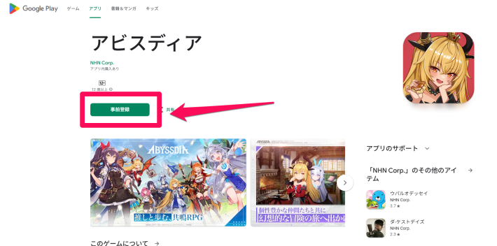 アビスディアの事前登録は、AppStoreとGooglePlayから登録することができます。リリース前に事前DLが開始する可能性もあるため、登録は早めにしておきましょう。