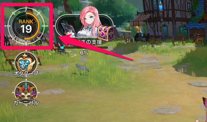 カンパニーランクは、タウンに移動すると画面左上に表示されます。また、左上のランクをタップすることでプロフィール画面が開き、ランクアップまでの残り経験値を確認可能です。