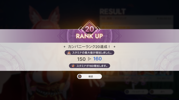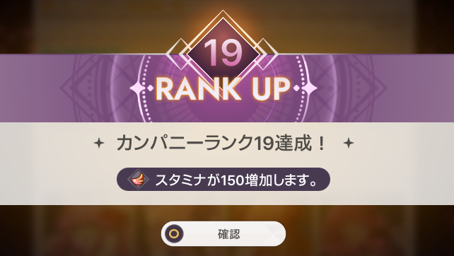 カンパニーランクを特定のレベルまで上げると、スタミナの上限値を増やすことができます。上限値を上げてレベルアップ時の回復量もアップさせましょう。