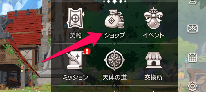 アビスディアのショップは、メニューから「ショップ」を選択することで確認できます。