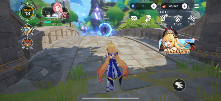 アビスディアの冒険のマップは、メイン画面右側にある「Adventure」のバナーをタップで移動できます。また、メニューにある「冒険」からも開くことができます。