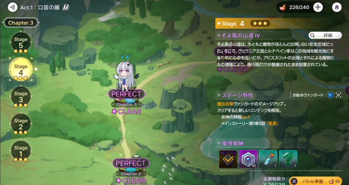 | レベル13 | 【解放条件】 Act3.3-5クリア 【報酬】 ・エスト×30(初回のみ) ・マナリング×120 ・古書Ⅰ×14+α ・古書Ⅱ×8+α ・古書Ⅲ×5+α ・古書Ⅳ×4+α ・古書Ⅴ×1+α |