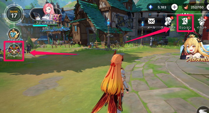 エストはミッション報酬で入手できます。ホーム画面左側にあるカーニバルクエストや右上のミッションからエストを受け取りましょう。