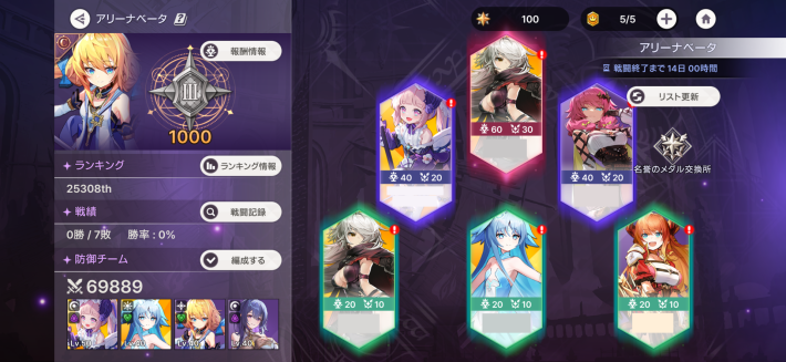女神の神殿やアリーナなど挑戦回数や開催期間が設定されているコンテンツは、早めに挑戦するのがおすすめ。特にシーズンの切り替えや回数のリセット時間が近い場合は、メンテ前に消化するのがよいです。