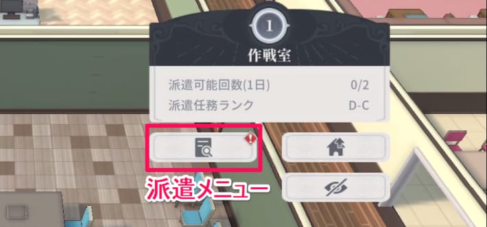 ①作戦室に向かい派遣メニューを選択
