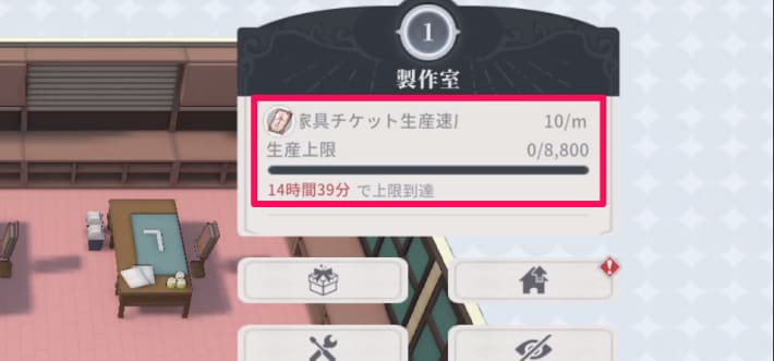 家具に必要なレシピを入手するためには、家具チケットが必要となるため、自動生産アイテムはこまめに受け取りましょう。上限を超えて生産されたアイテムは、受け取ることができないため注意が必要です。