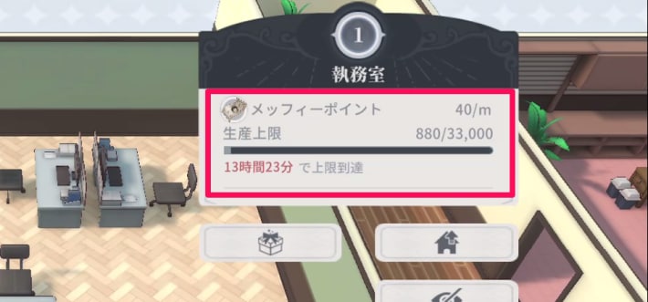 執務室 | ★★★★・ ・メッフィーポイントを自動生産 ・メッフィーポイントが欲しい場合は優先的に強化 |