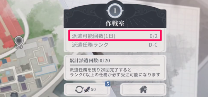 キャラを派遣できる回数は、最初は1日に2回までとなっており、作戦室のレベルが上がると回数が増加します。毎日忘れずに派遣を行い、報酬を受け取りましょう。