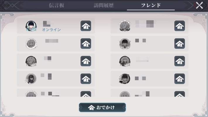 ほかのユーザーのマイルームを訪問できる