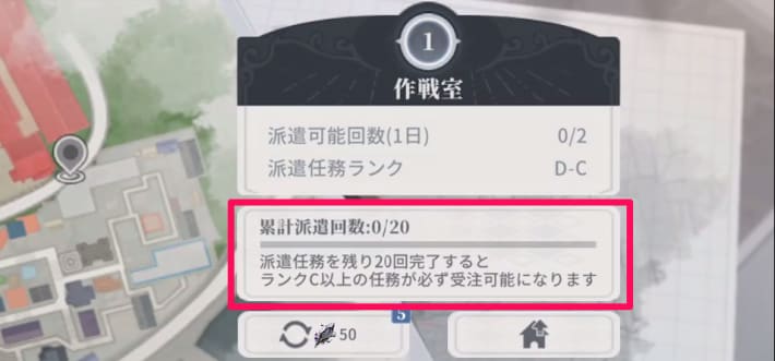 一定数任務を完了すると派遣任務のランクが上がります。報酬が豪華になるので、毎日派遣を行いレベルを上げましょう。