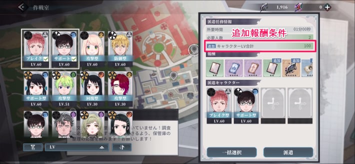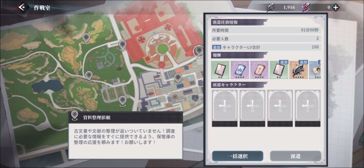 任務にキャラの派遣を行える