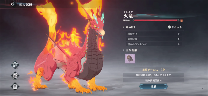 総力試練のボスが切り替わり、新たに火竜が登場しました。クリア段階がリセットされているため、再度報酬を獲得することができます。