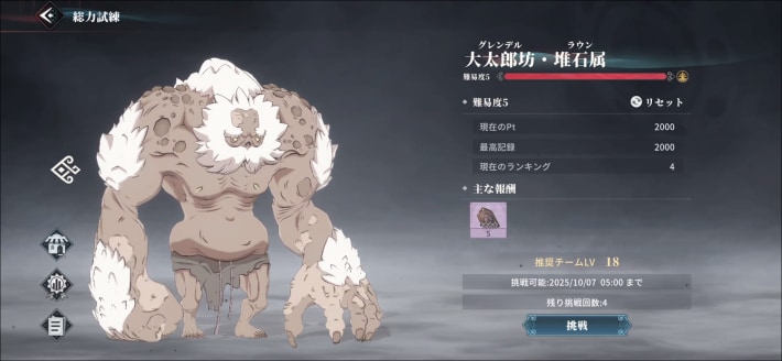 総力試練は、ボスに挑戦して獲得したポイントでランキングを競うコンテンツです。制限時間内に1~50段階の難易度のボスに連続して挑戦でき、獲得したPtに応じてランキング順位が決定します。
