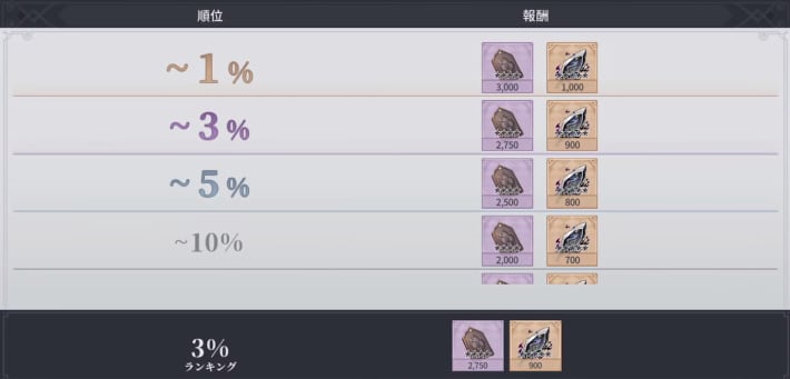 獲得したPtに応じて、サーバー内でのランキングが決定します。ランキング順位に応じて、多数の総力試練の証や魔輝石を獲得できるため、高い順位を目指して積極的に挑戦しましょう。