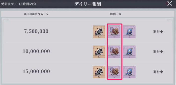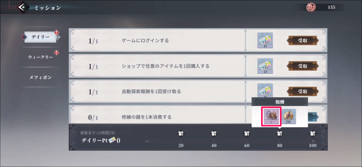 デイリーミッションで獲得