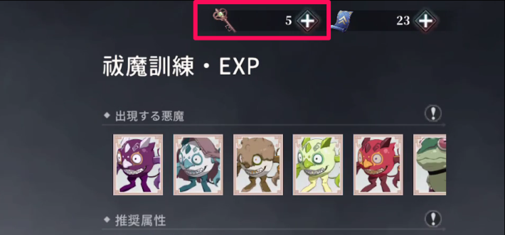 修練の鍵/退魔の鍵は、毎日5時に5本になるように補充されます。補充タイミングで鍵を所持していた場合は、その本数に合わせて補充される数が減ってしまうため注意しましょう。