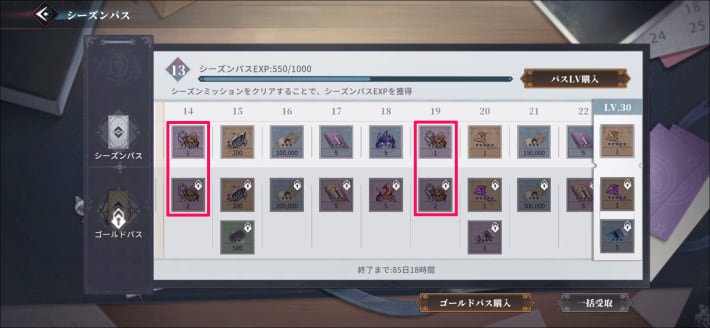 シーズンパスで獲得