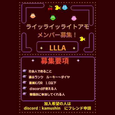 ・discordで通話が出来れば下手(初心者)でも大歓迎です。