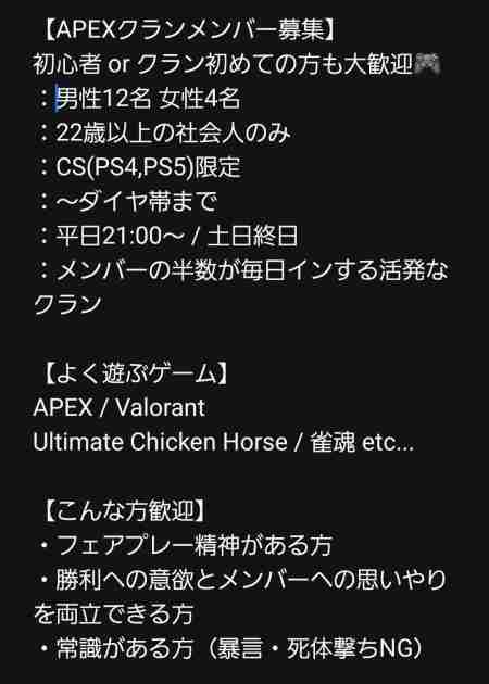 APEXクランメンバー募集