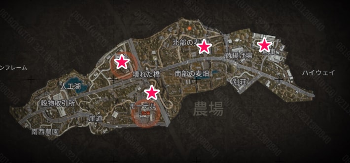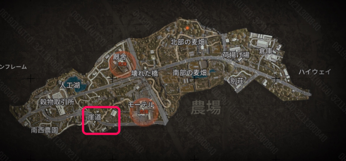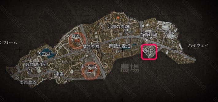マップ東側に位置しており、道を挟んだ南側にミドルティアエリアの別荘がある。ボス湧きはあるものの、付近には脱出地点が多く漁りルートに組み込みやすい場所だ。