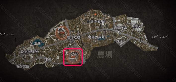 モーテル北側外周には、無料金庫が設置されている。射線が通りやすいため、必ずクリアリングしてから漁ろう。貴重なサプライスポットのタクティカルパーツケースも、モーテル入口近くにある。