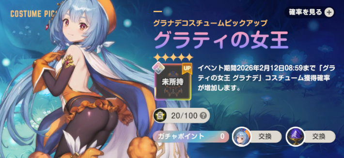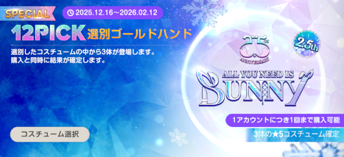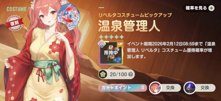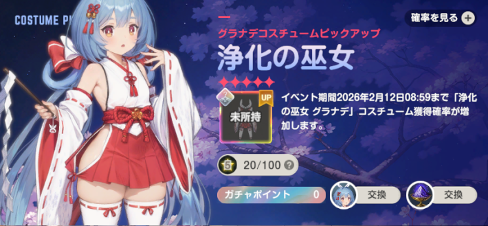| コスチュームガチャ | ~2/12(木)8:59 |