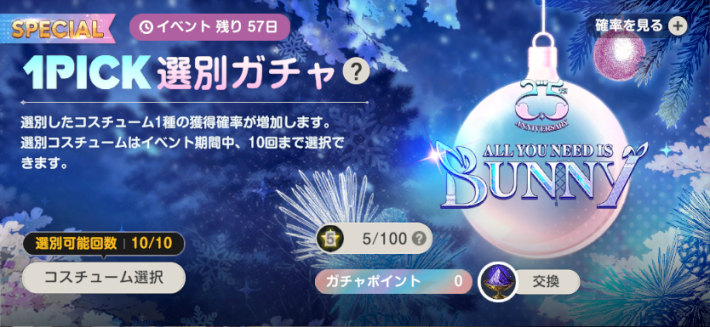 | コスチュームガチャ | ~2/5(木)8:59 |