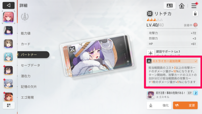 パートナーパッシブによって戦闘員を強化できます。ダメージアップや士気獲得などの追加効果を得られます。
