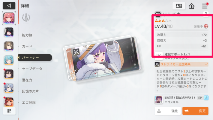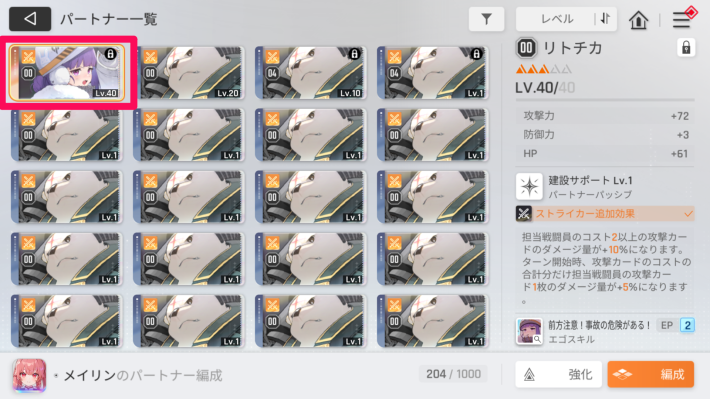 サポートデータとユニットを使用すると、パートナーのレベルを上げられます。最も手軽に戦力を上げる方法です。
