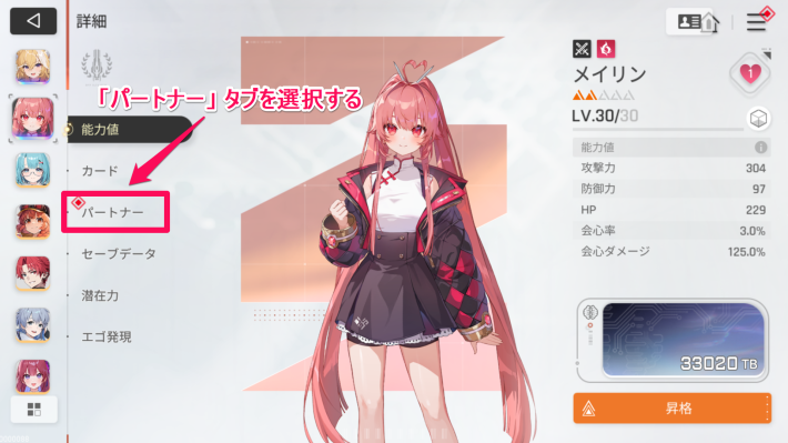 パートナーのレベルには上限があり、昇格を行うとレベル上限を解放できます。また、昇格時にステータスも上昇します。