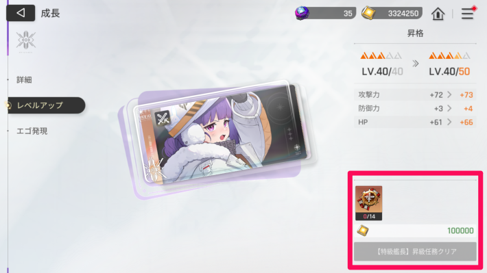昇級任務のクリアで昇格可能に