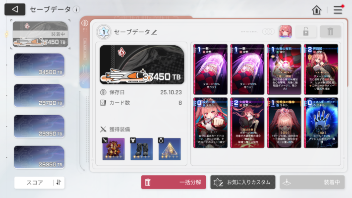 保存したセーブデータを装着することで、戦闘任務やシミュレーションで最初から強力な装備とカードを使用できます。