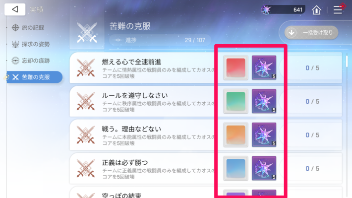 背景やステッカーは実績をクリアすることで獲得できます。欲しい装飾品がある場合は実績からクリア条件を確認しましょう。