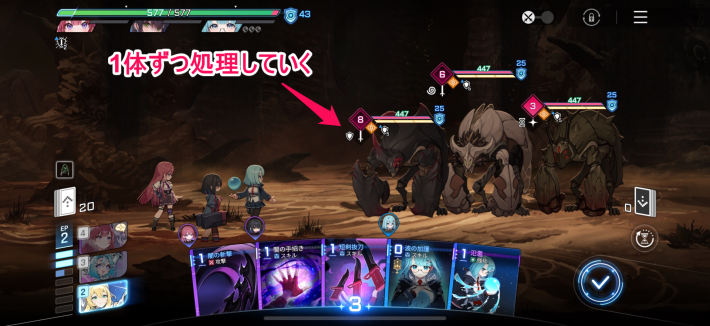 1ステージ目は1体ずつ倒す