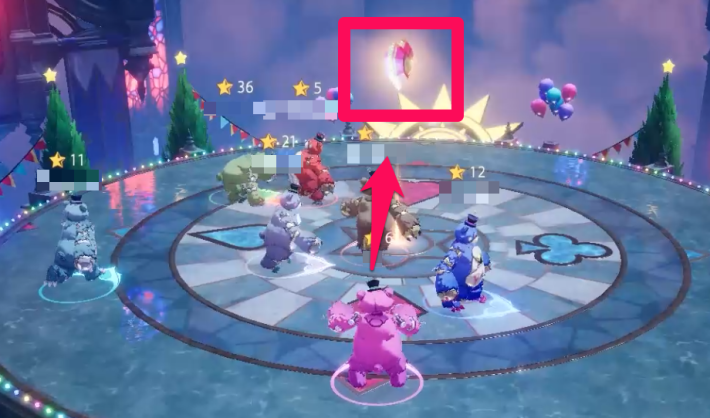 舞台中央に出現するハートを獲得しましょう。特殊なモーションに入り、近くの他のプレイヤーを一掃することができます。