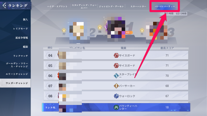 ランキング順位はサーバーごとに集計され、1ゲームでの最高ポイント数に応じて順位が決まります。